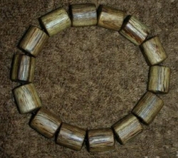佛珠,沉经百年吸收大地精华,而自有其灵气及强烈磁场,自古便为人视为驱虫避邪的圣物。因其物理特性非常特殊,即凝结油脂部位很硬,腐朽部位很脆,故在雕佛时,用刀非常困难往往一不小心整块沉木即告报废,所以说能够制成念珠、佛像,均是非常珍贵难得、且感应愈是殊胜。尤以其镇心神之甘醇味,可于诵搯佛珠时,自然嗅得,犹如时刻燃香神佛之殊胜是为修行的利器。